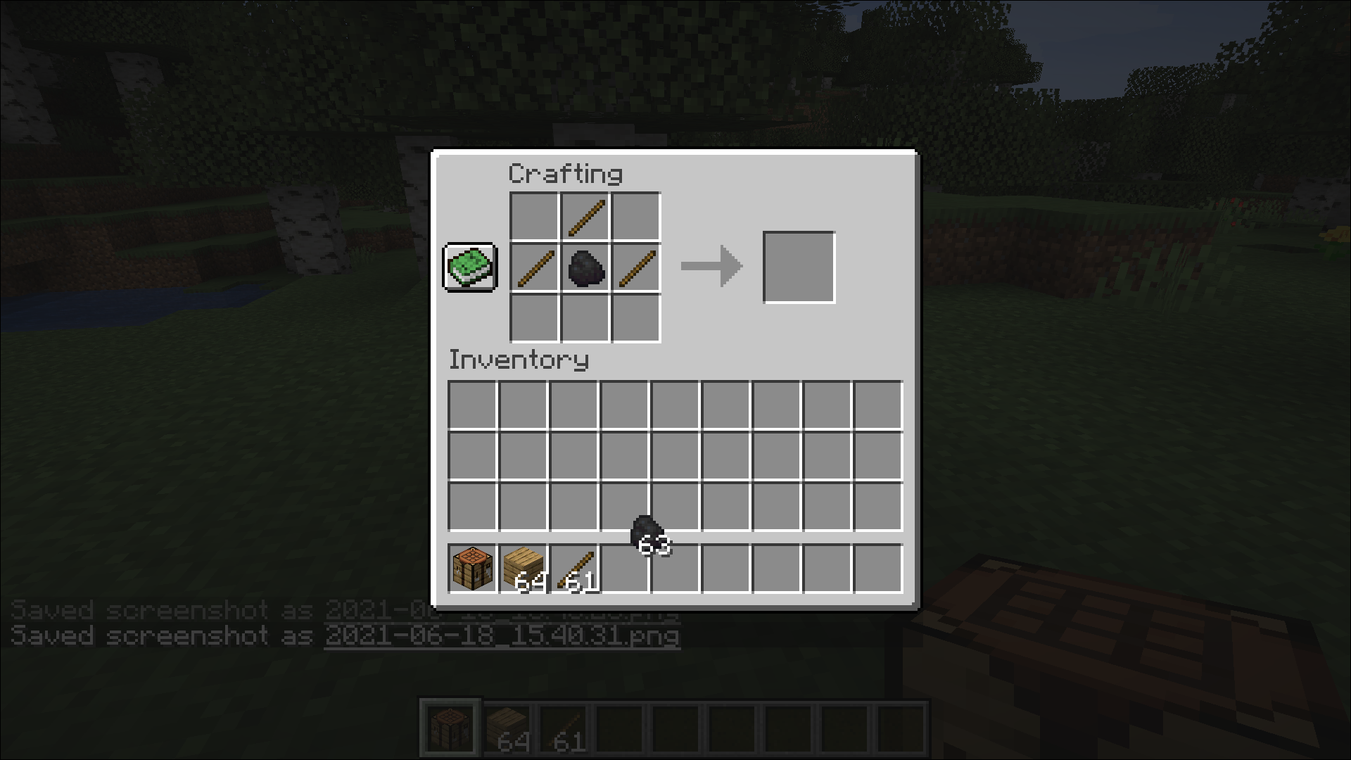 Next, you’re going to need a campfire to lull the bees inside the nest. It’s best if you do this before you set out unless you have a crafting table in your inventory. You’ll need: