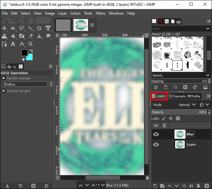 To blur an image in GIMP using the Gaussian layer option, follow these steps: