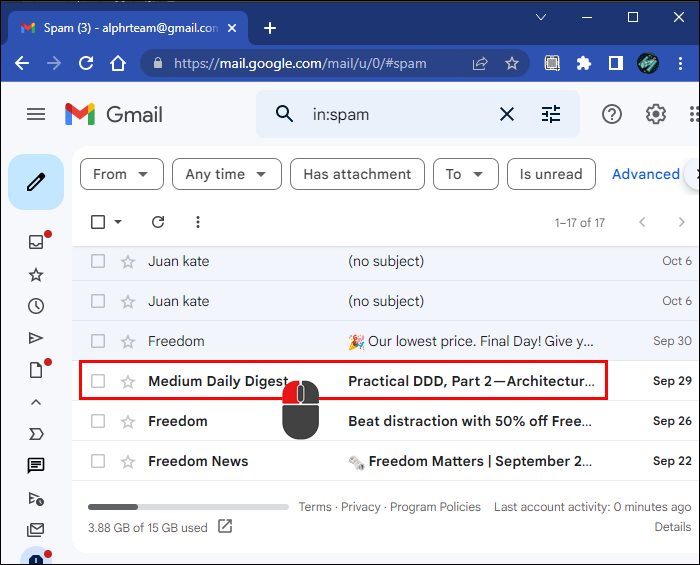 Emails in the Spam folder remain there for 30 days, and you need to mark them as safe to access their contents. If you wait too long, you might not know Gmail has already deleted them. Checking your Spam folder often is an excellent way to spot missing emails. Here’s how:
