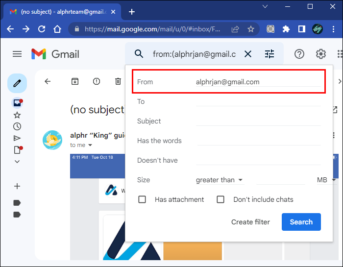 - Enter the email address in the “From” field.