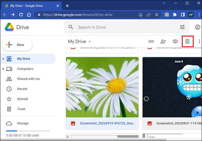 - To delete multiple files, check the box next to each one while in the main folder and select the “