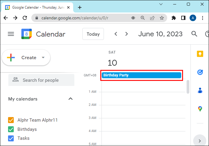 - Choose the event on your Google Calendar to open the details window.