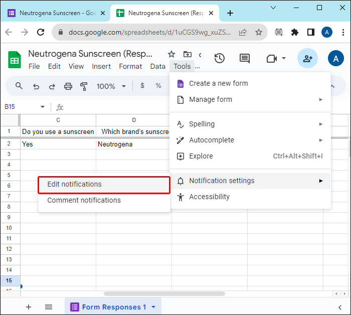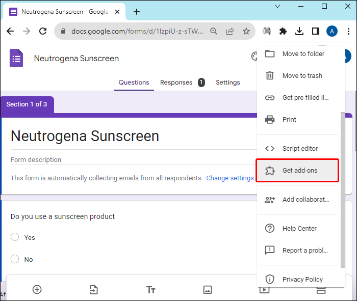 Though the above method is better than manually tracking new submissions, the notifications don’t show the form’s content. You’ll have to open Google Forms sheet to view the details. To get more functionalities, you can use add-ons.