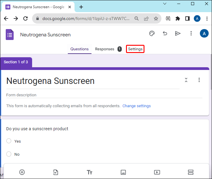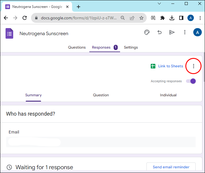 - After setting up your form, navigate to the top and tap the “Responses” tab.