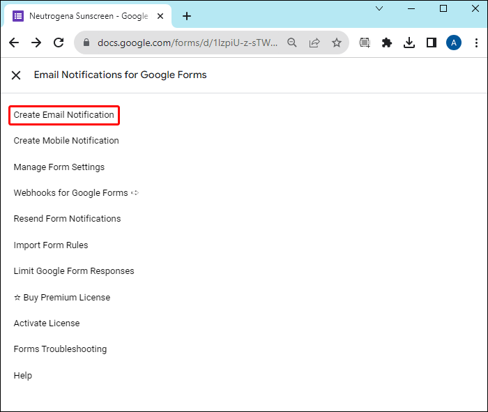 Email Notification for Google Forms is one of the best add-ons that allows you to set rules for your notifications. Also, you can use it to receive notifications on your phone. The best part is that the notifications you receive show the form’s contents – you don’t need to go to Google Forms to view the responses. Here’s how you use it: