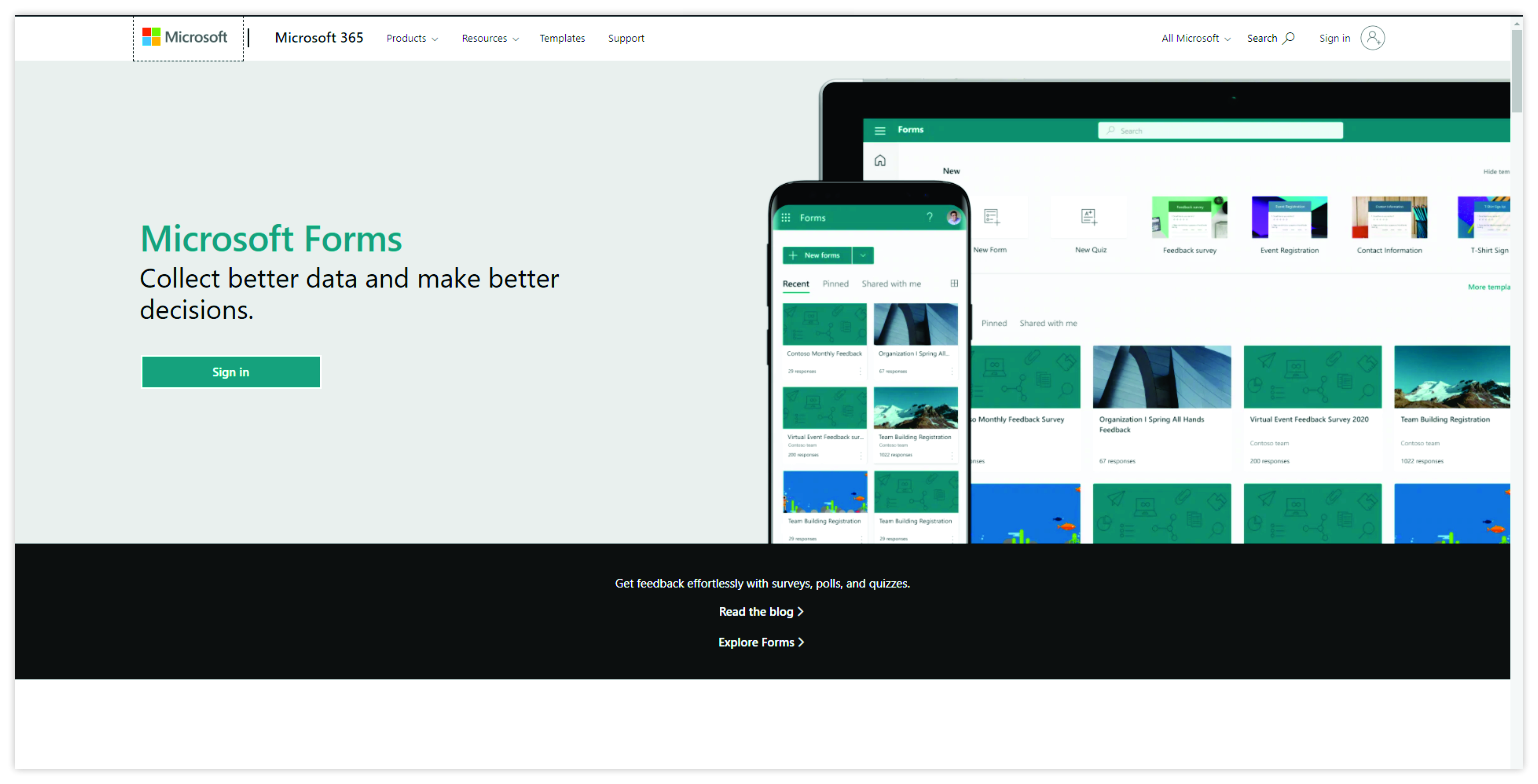 • Go to the Microsoft Forms website