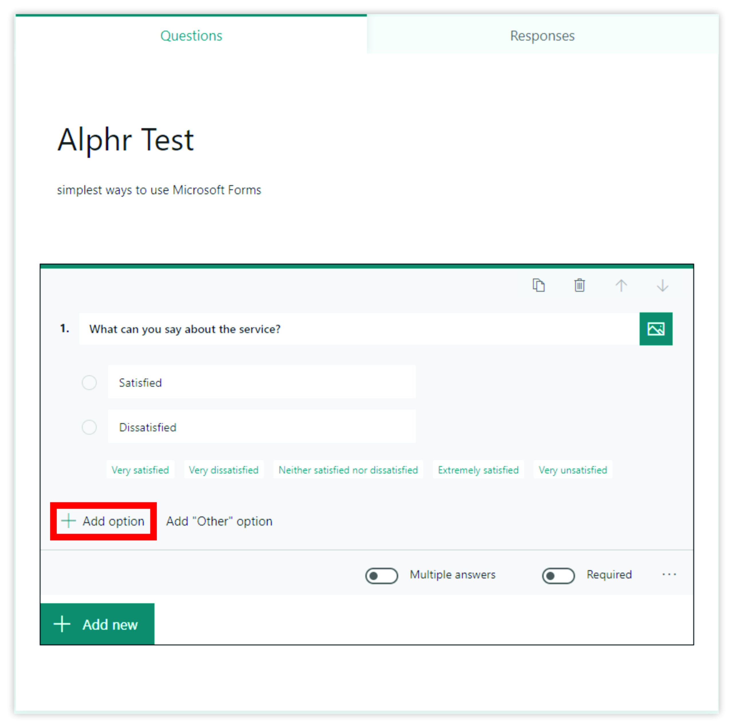 • Select Add Option to add more choices or Add “Other” option for Other choice text