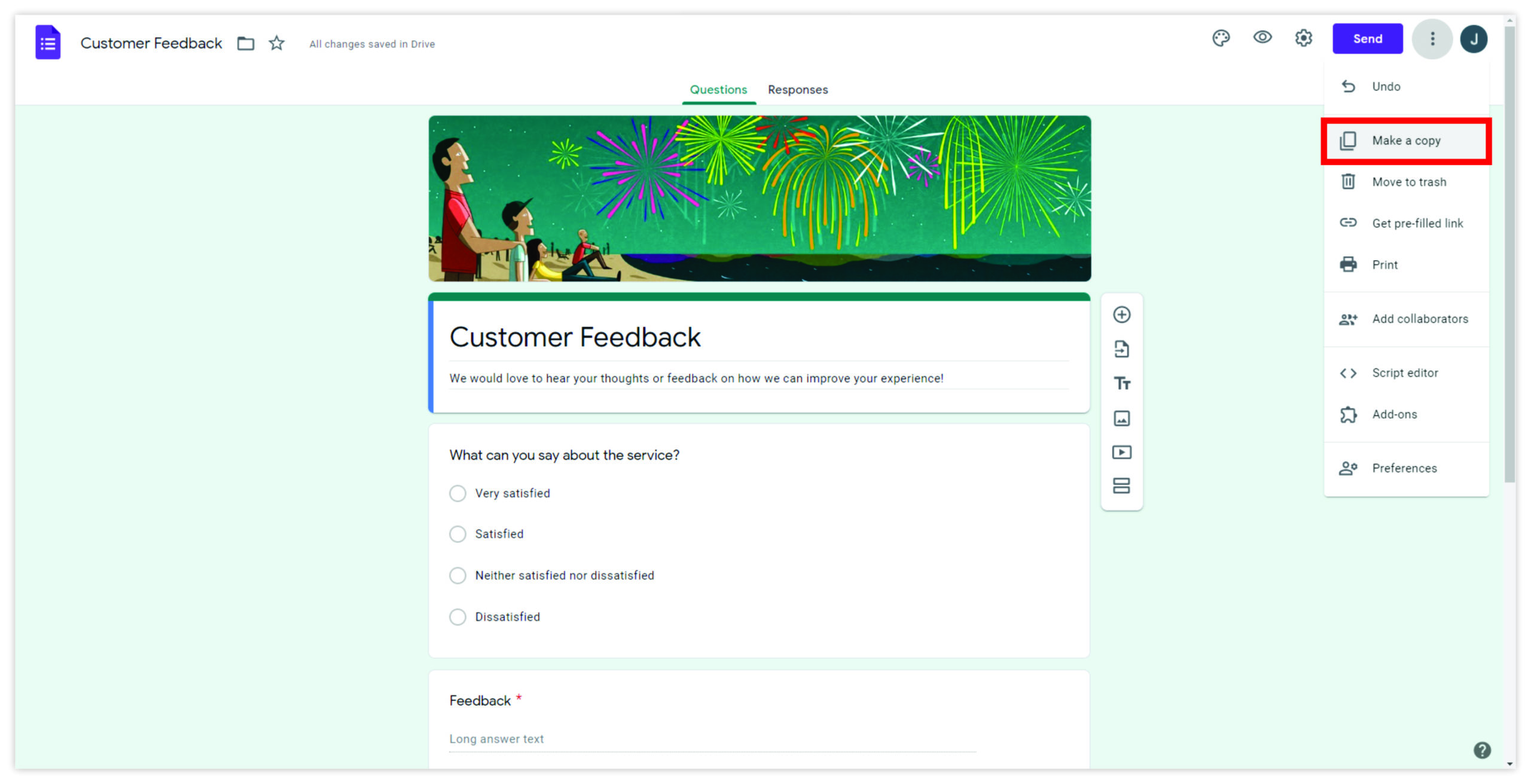 • Save the Google Form to Drive and create a copy