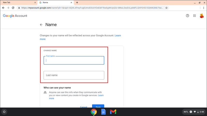 At this point, Google will let you know that changes to your first and last name will be reflected across your entire Google account. It will also take Google a couple of minutes to apply these changes to every Google app.