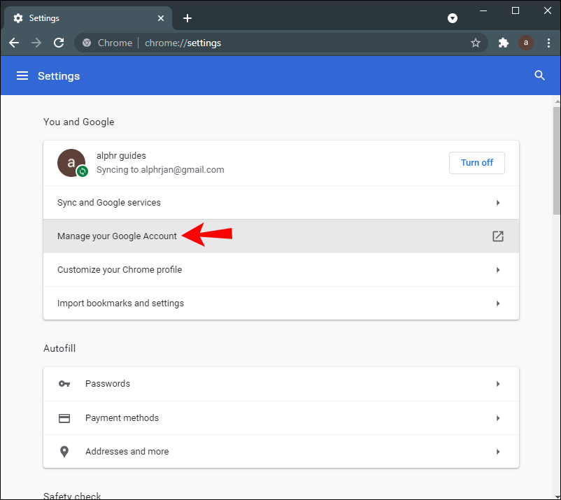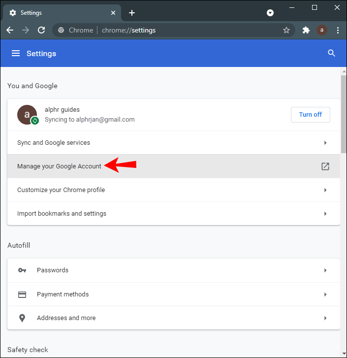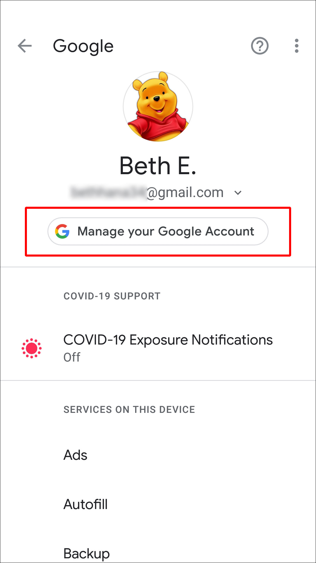 - Choose “Settings” and proceed to “Manage your Google Account.”