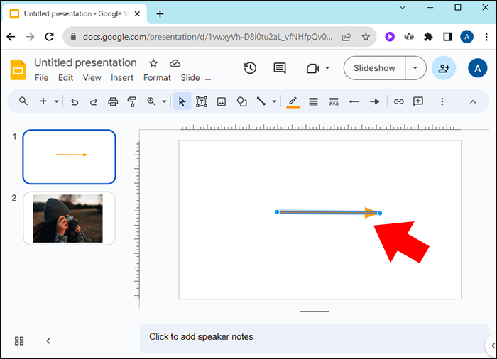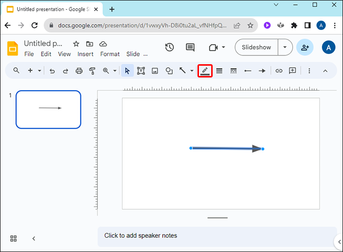 - Click on a line arrow in a Google Slide.