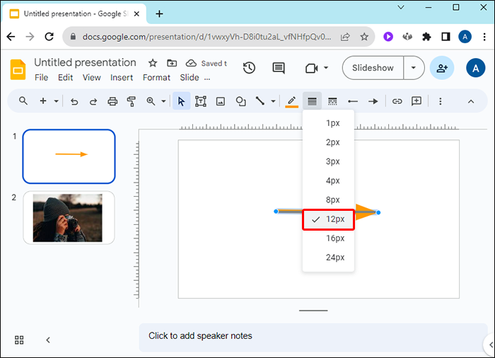 Change Your Line Arrow Thickness in a Google Slide