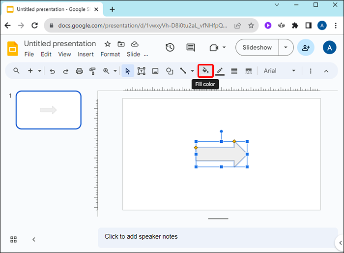 If you’ve added an arrow as a shape in Google Slides, follow these steps to change its color: