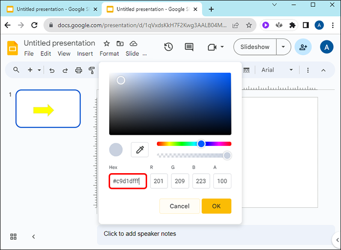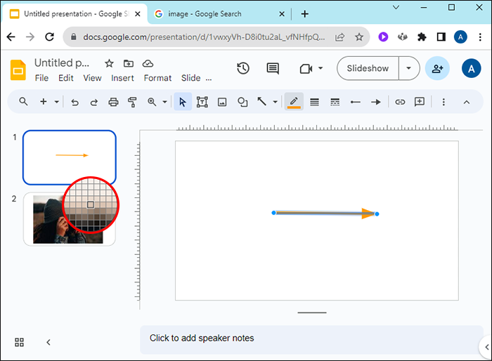 If you’d like your arrow to match a color from an image in your Google Slide, follow these steps:
