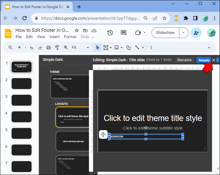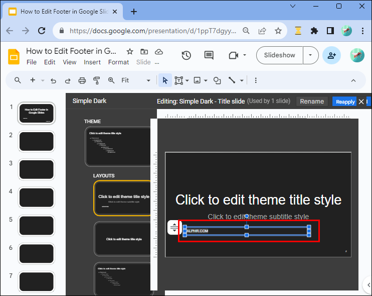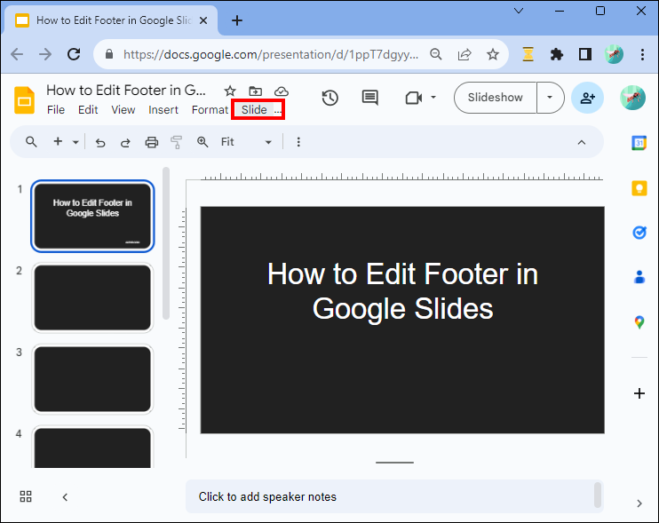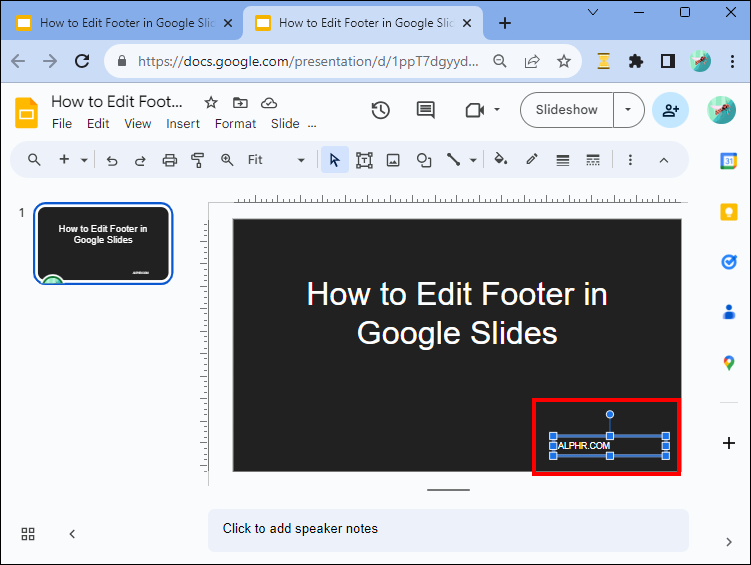 If you want to add the same footer on all your Google Slides, repeating the process for each slide can be daunting. Fortunately, there is a way you can edit the footer on a single slide and apply the effects to other slides automatically.
