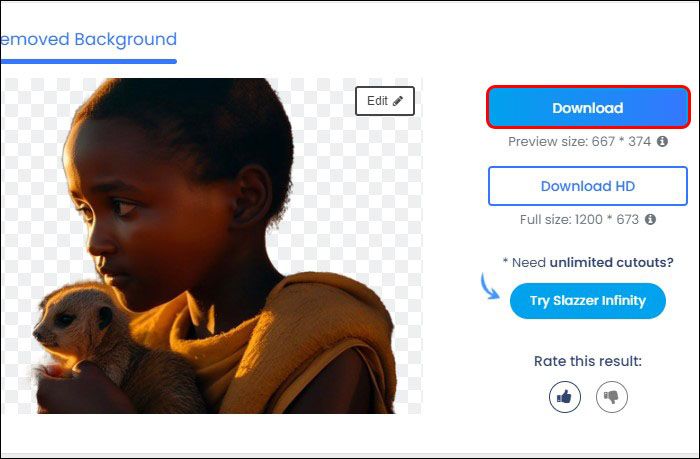 - Wait for the new transparent background photo to be processed and choose “Download.”