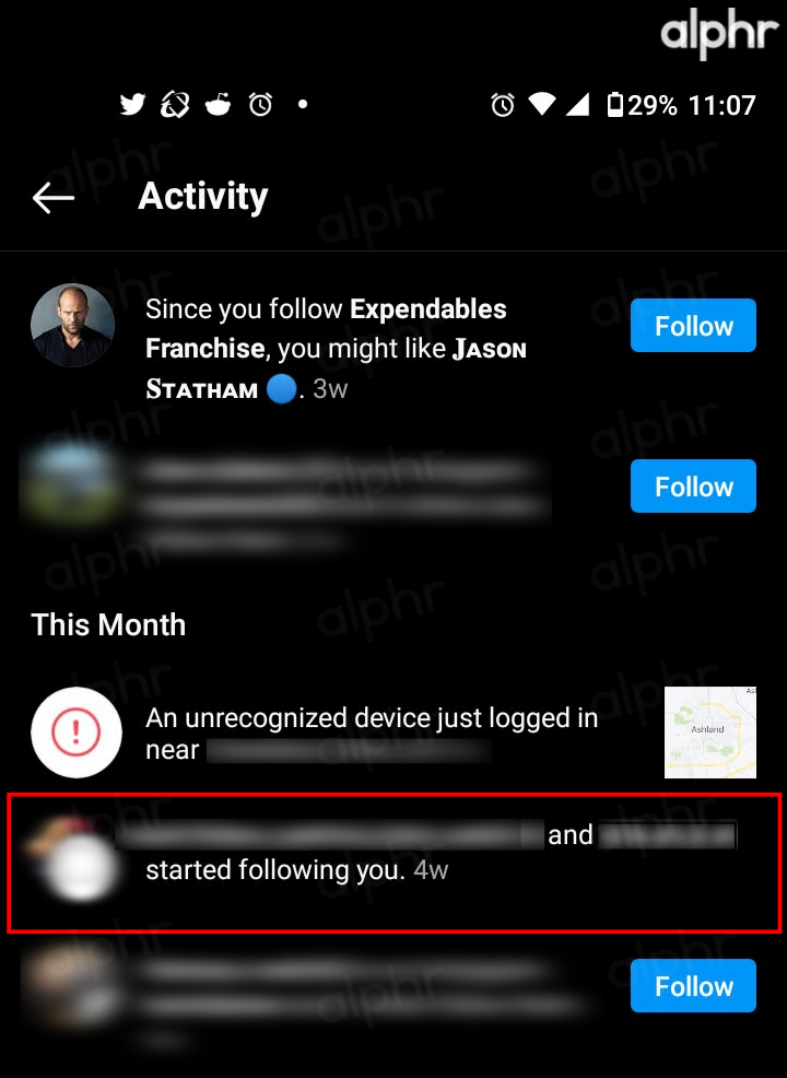 All the above notifications get viewed by tapping on that activity “heart” icon at the top of the home page.