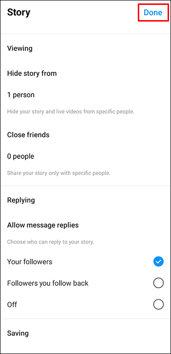 - Go one step back to Story settings and click “Done.”