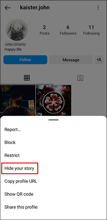 - Click “Hide your Story.”