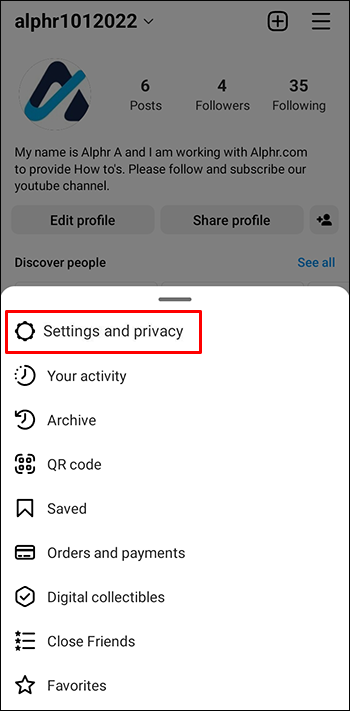 - Tap “Settings and privacy.”