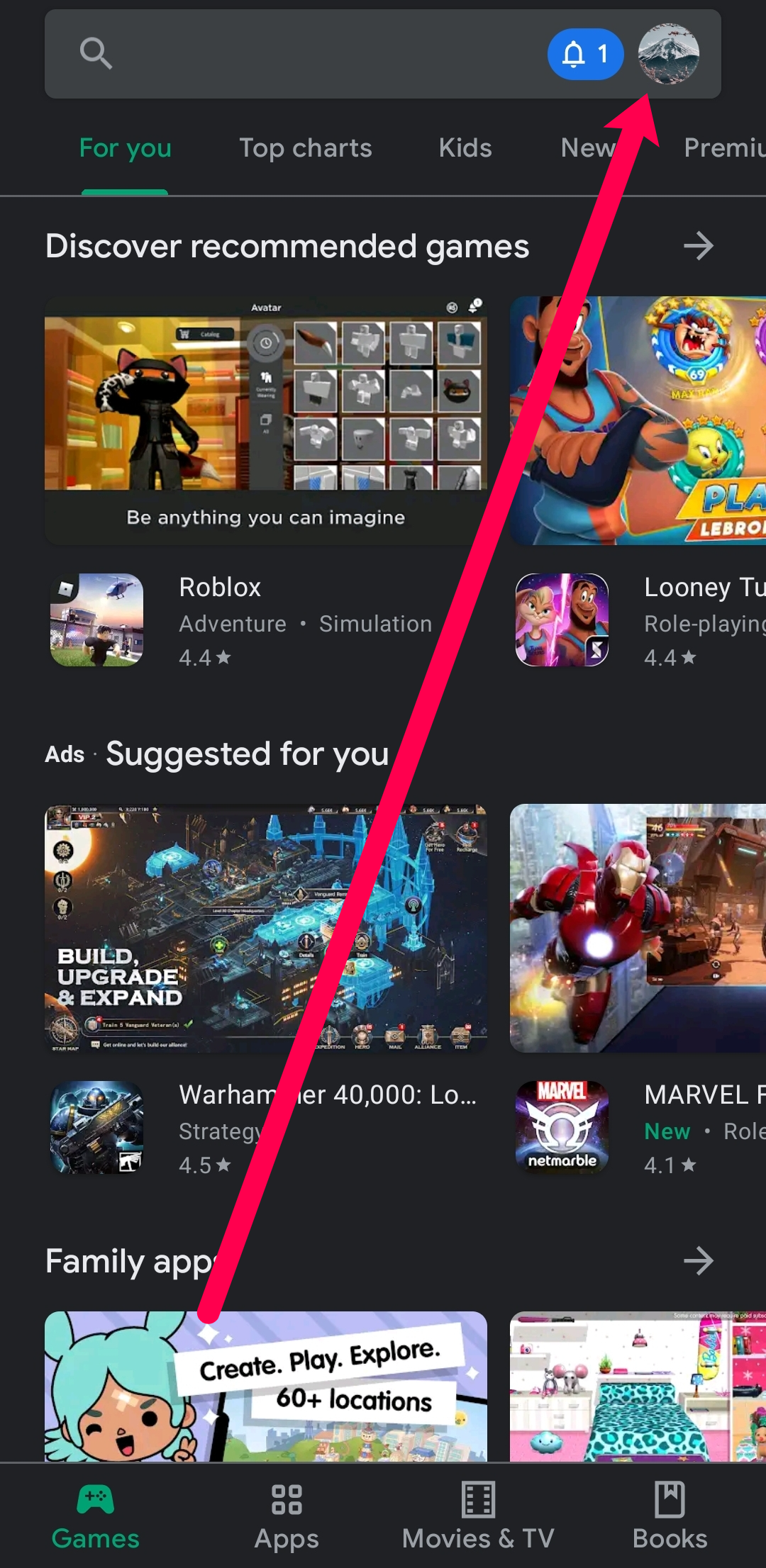 - Open the Google Play Store and tap on your profile icon in the upper right-hand corner. Older versions have a three horizontal line menu in the right-hand corner.