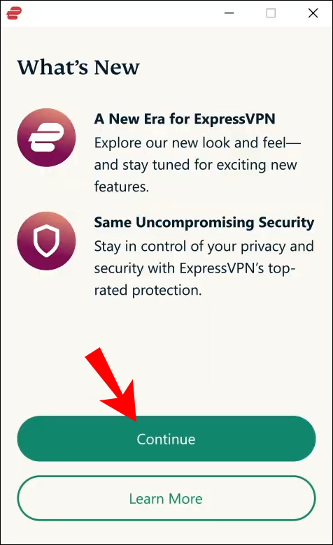 - A pop-up screen will appear. Click “Continue” when prompted and then “Set Up ExpressVPN” to complete the process.