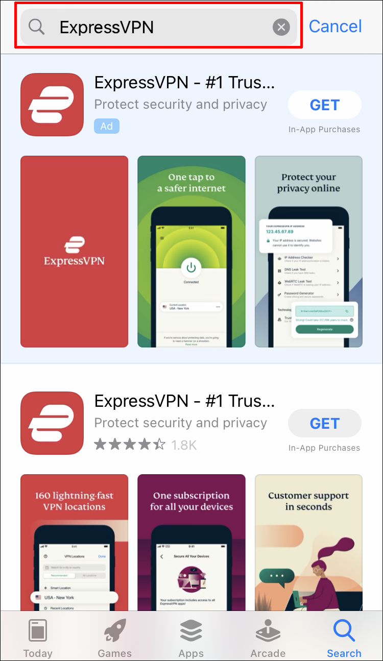 - Type “ExpressVPN” into the search box at the top of the screen.