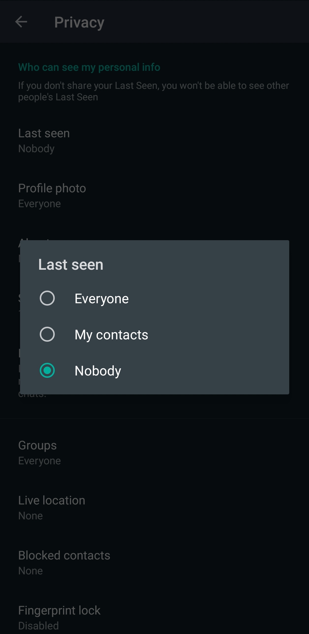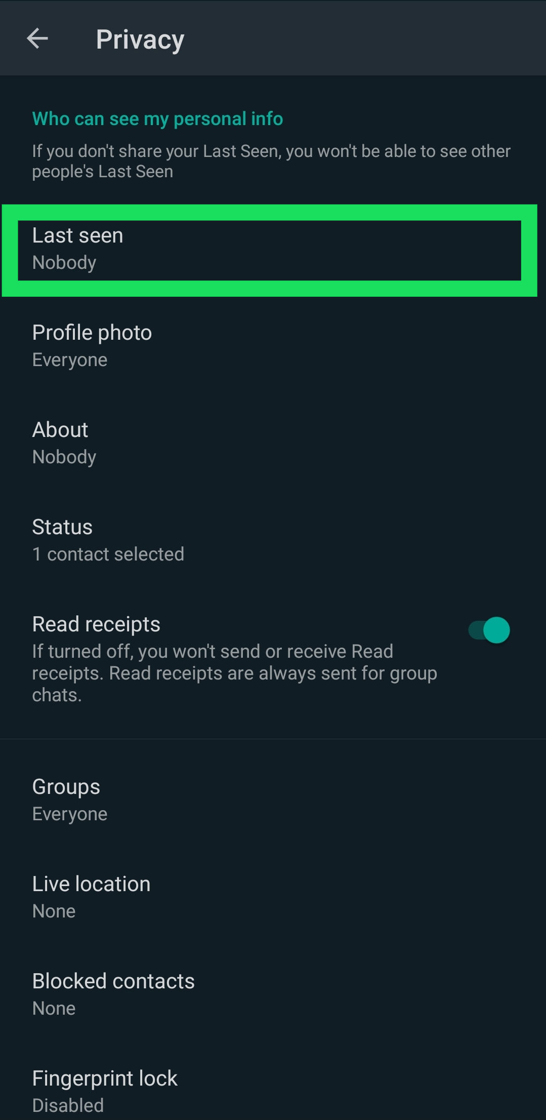 Now, only those you want can see your ‘Last Seen’ status. Keep in mind; these changes take effect immediately.