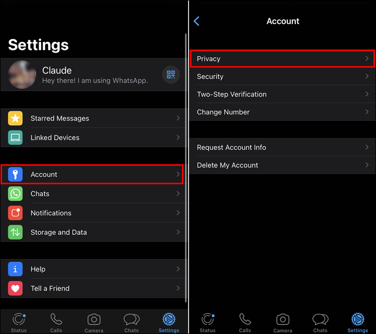 - Tap Account and choose Privacy.
