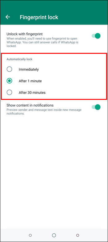 - Choose how soon this security measure will take when the app is idle. Options include Immediately, After 1 minute, and After 30 minutes.