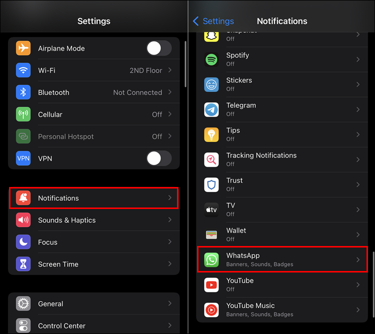 - Locate and select Notifications and then WhatsApp.