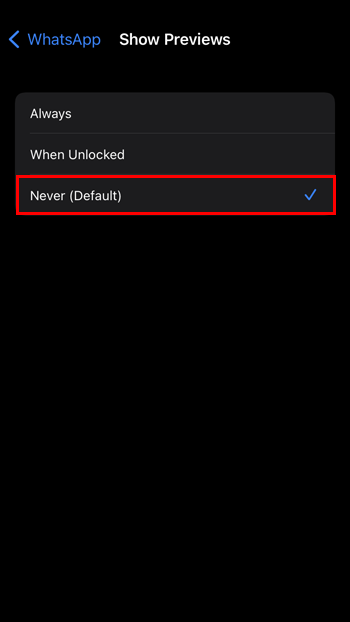 - If you have the Show Previews option, press on it and choose Never.