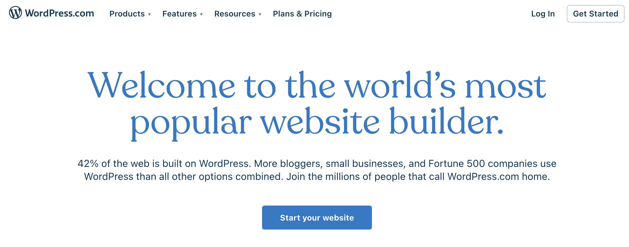 - Visit the WordPress website on your web browser and visit this link. Then, click ‘Start Your Website.’