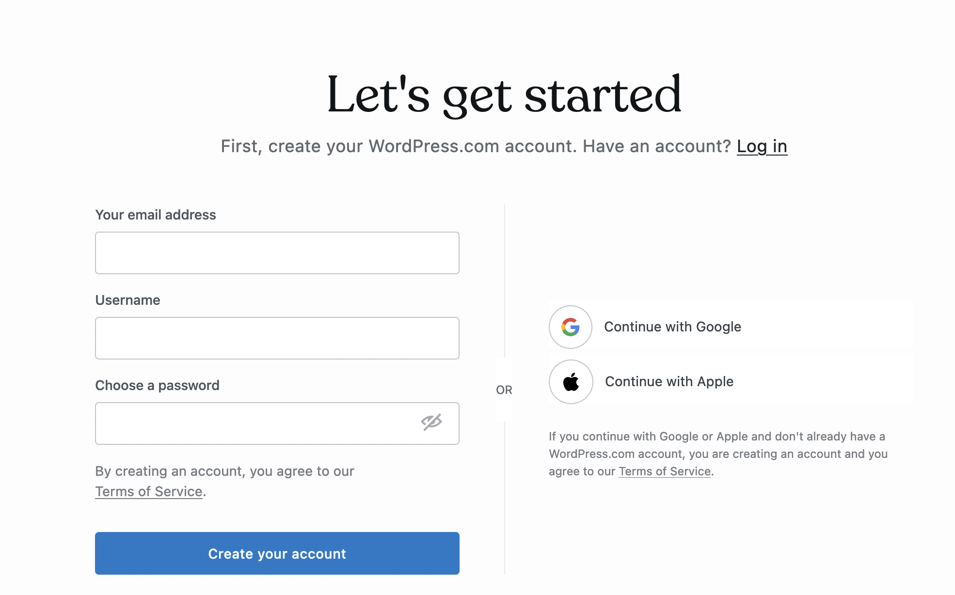 Before we get to your blog, let’s take a moment to create your website. It’s really easy and only takes a few minutes.
