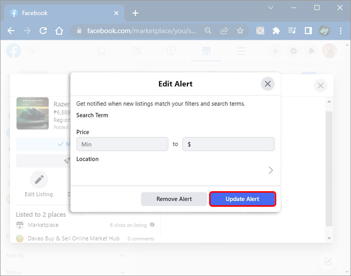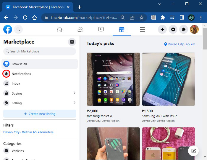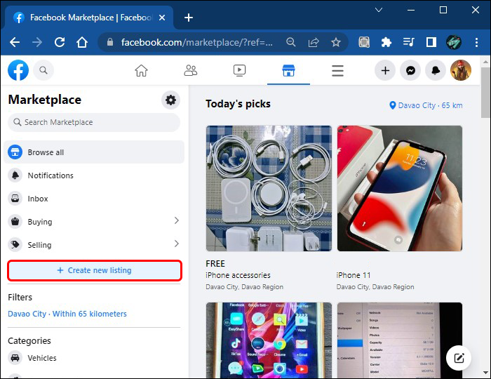 - Log into your Facebook account and navigate to the “Marketplace” tab.