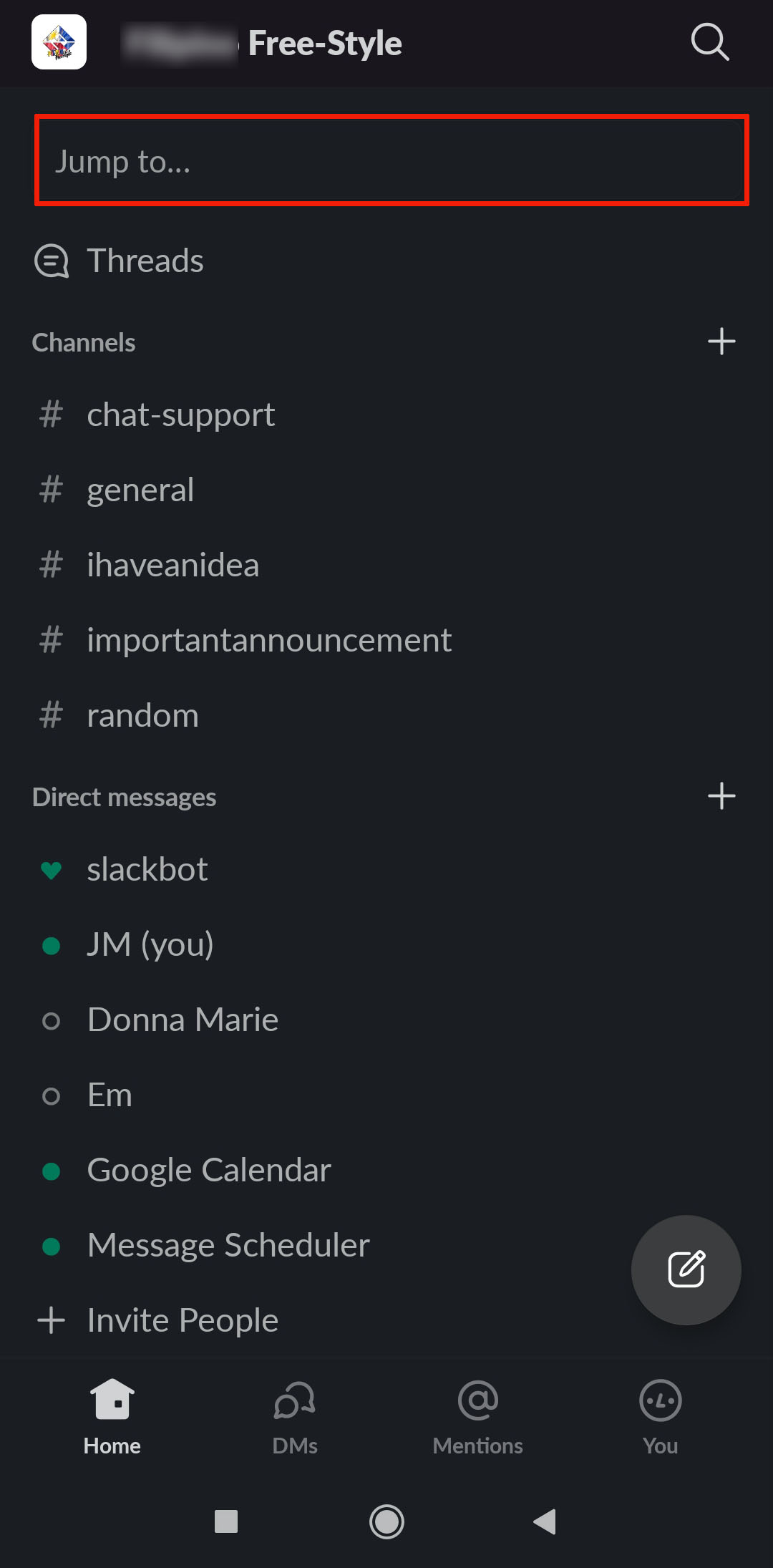 - In your workspace, tap the “Jump to…” search box at the top of the screen.