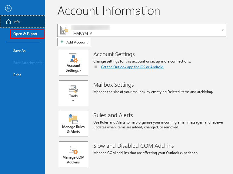 - In Outlook, go to the “File” tab.