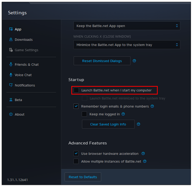 - In the General tab, uncheck the item named “Launch Blizzard App when you start your computer.”