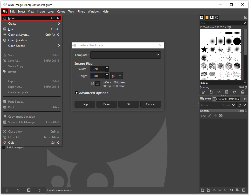- Open GIMP (if you don’t already have the program, you can download it from the official website).