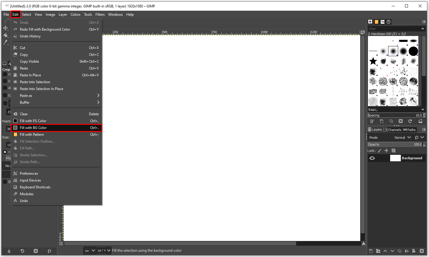 - Open “Edit” and “Fill with BG Color” to color the background.