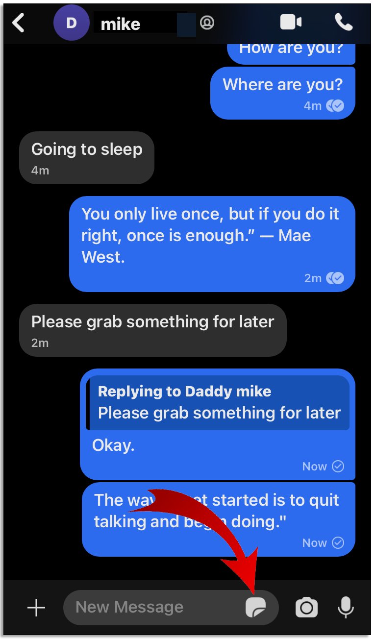 - Click on the emoji or the sticker icon on the left of the conversation box.