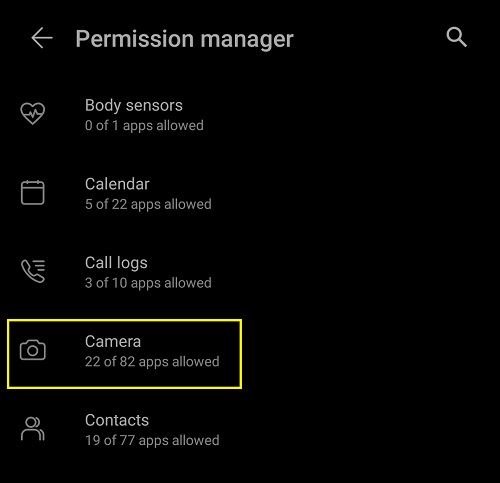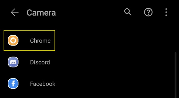 Find and select Camera from the list. If you have ever blocked camera access to Chrome, you will find the Chrome entry on the list.