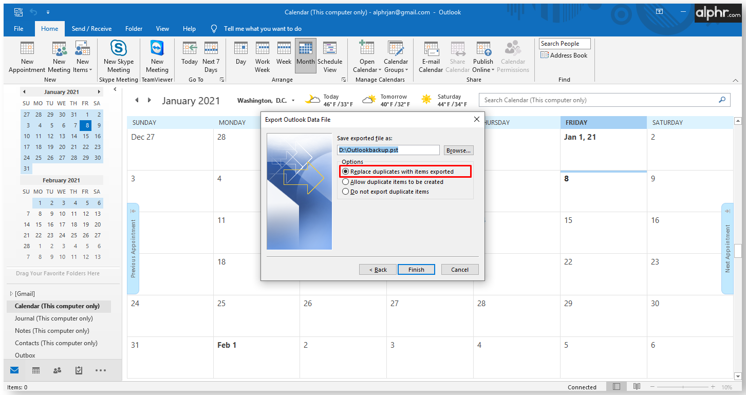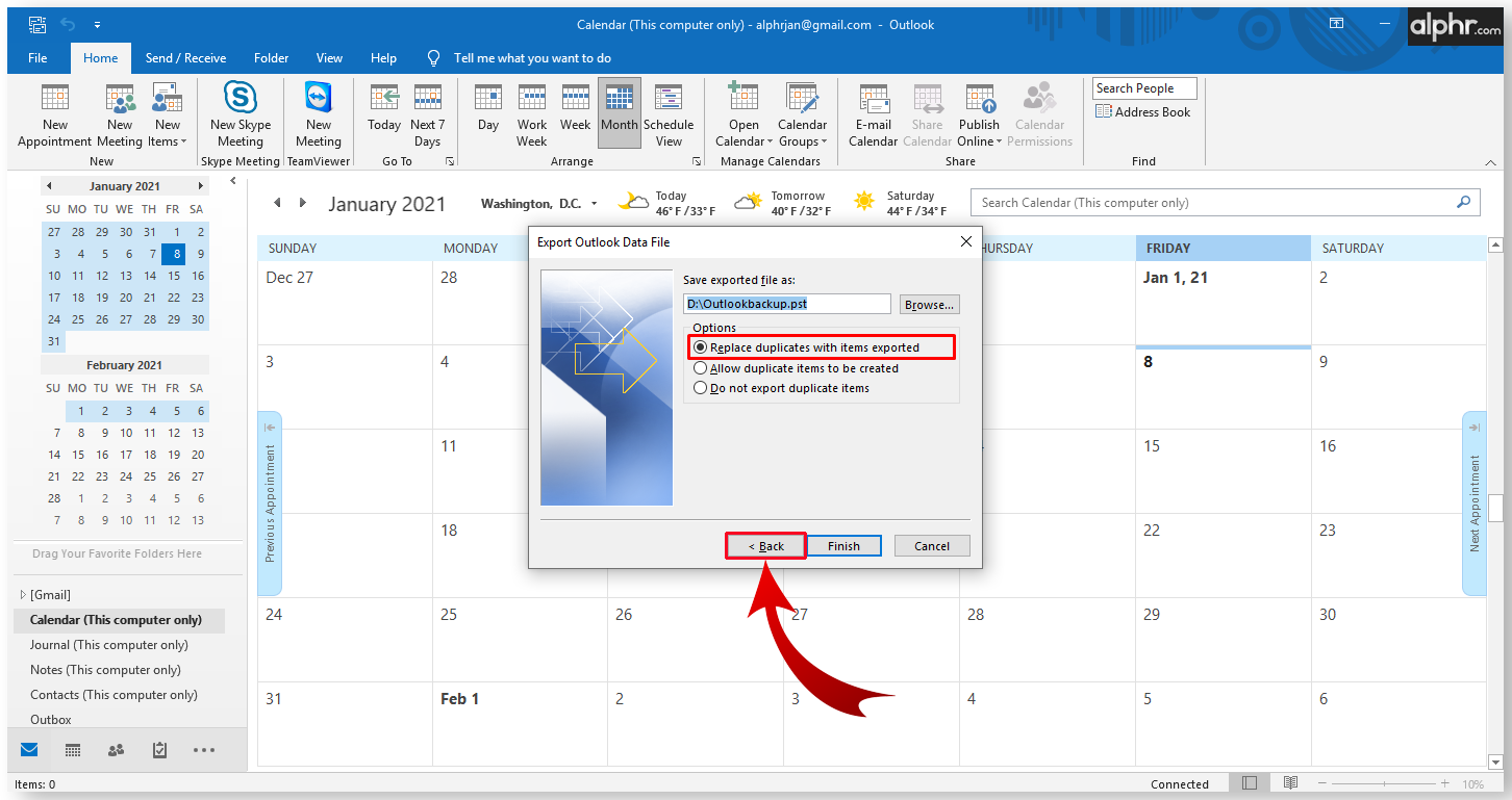 - If you’re saving the backup file in the default path, select whether you want duplicate items.