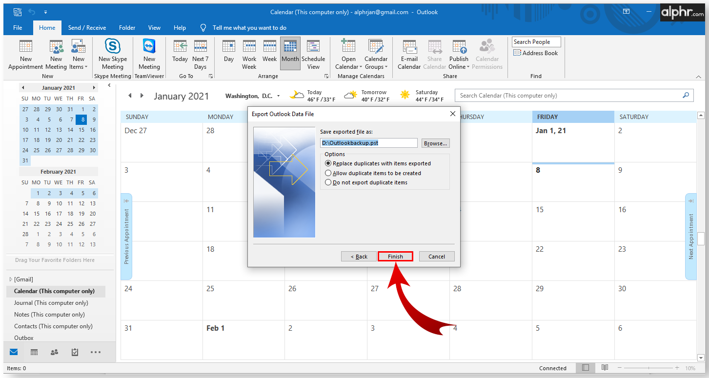 Here’s how to backup your emails onto a .pst file:
