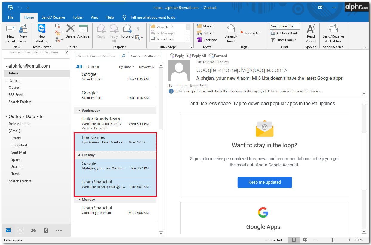 If you want to save more than one email at a time, but don’t need your entire email library, there is a way to select a few emails to save at once. Here’s what you need to do: