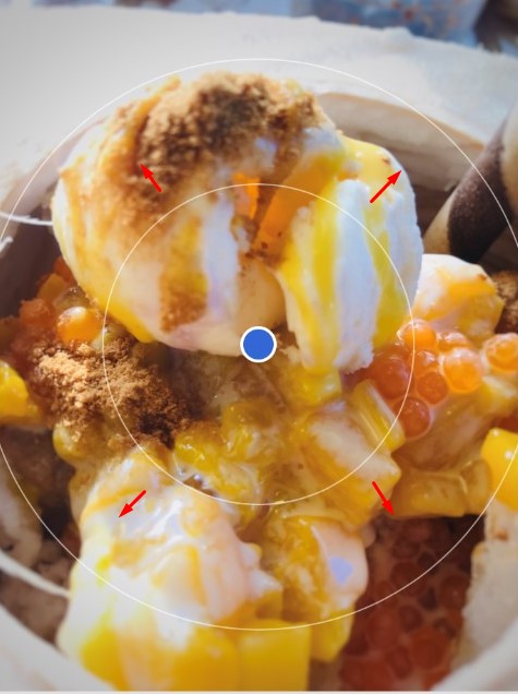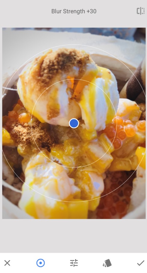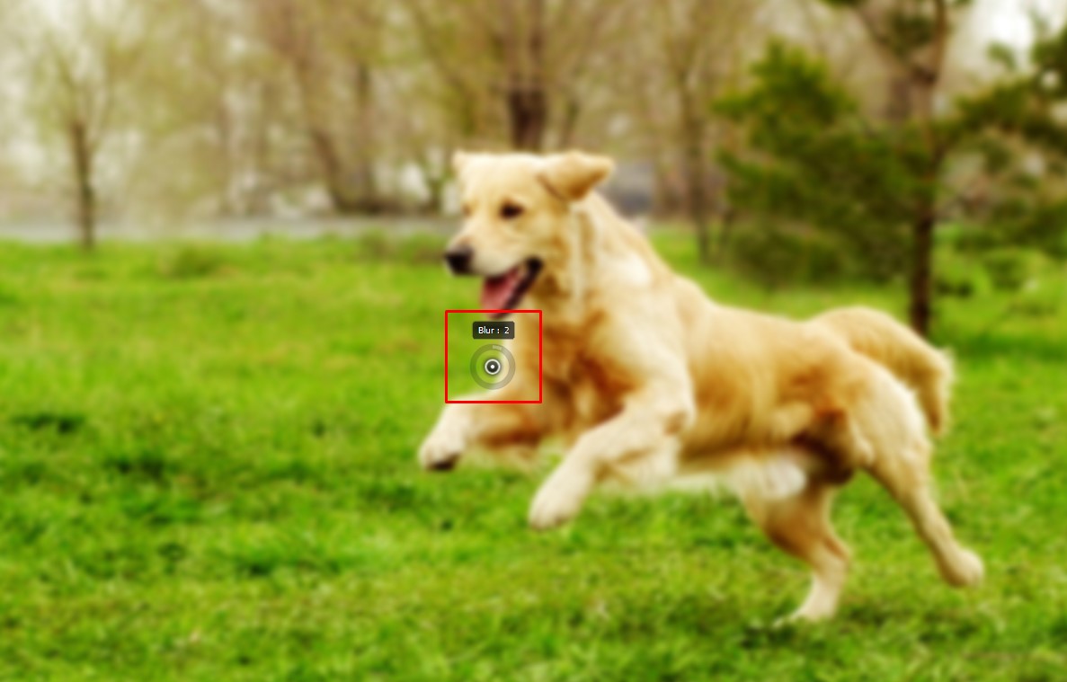 - A pin represented with a circle will show on the image. You can use this to select change the blurring strength.