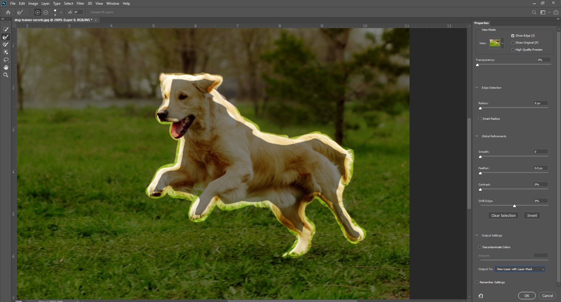 - Ctrl + Click (Windows) or Cmd + Click (Mac) on the hidden layer mask to load the selection. We’ll use this to smoothen the edges between the subject and the background.