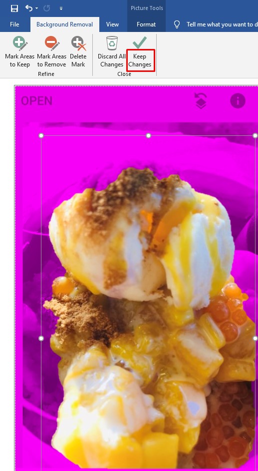- Select the Remove Background feature. The tool will automatically try to detect where the background is and remove it. If it doesn’t work the way you like it, use manual selection options: Mark Areas to Keep and Mark Areas to Remove.