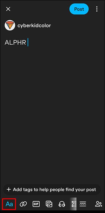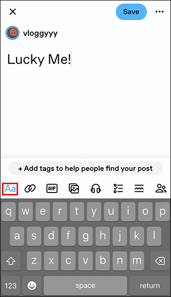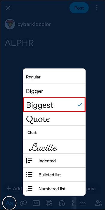 - Press and hold the Aa icon to change the text subtype.