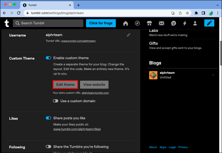 - Log into Tumblr and open your blog.